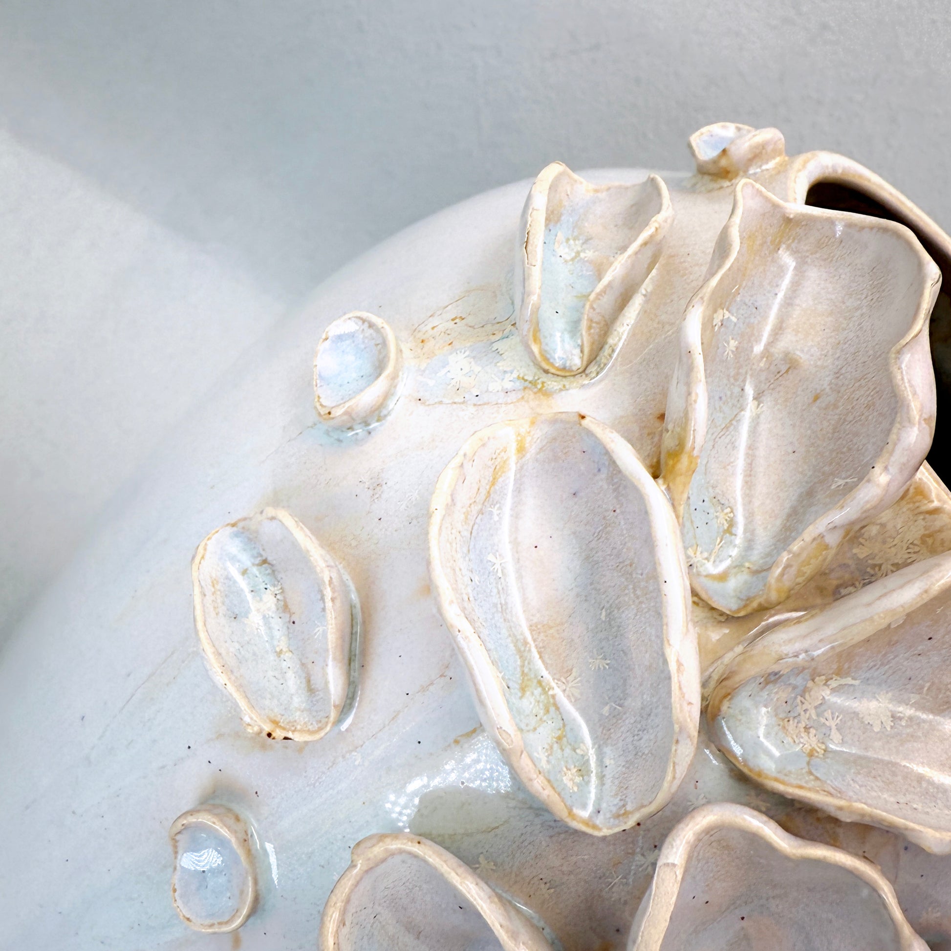 - Hand-built petal and shell detailing